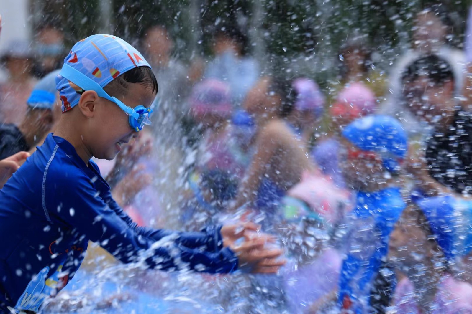 泳池里的“人工降雨”